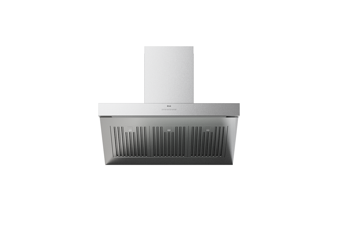 The ILVE Professional Plus 90 cm stainless steel wall hood is designed for larger kitchens where both efficient ventilation and a modern design are essential. This hood is made of AISI 304 stainless steel for durability and style and is available in both suction and filtering versions for maximum installation flexibility.